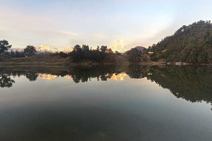 Deoriatal Lake is a quintessential lake located in Sari Village near Ukhimath, Uttarakhand. Situated at an elevation of 7,810 feet above sea level, the Lake offers a breathtaking and picturesque view, especially in the morning and evening. The snow-covered Chaukhamba peak in the backdrop of the lake looks majestic, and its reflection on the lake seems like a picture postcard scene. The lake is en route for trekkers on the Chopta Chandrashila Trek via Devriyatal.