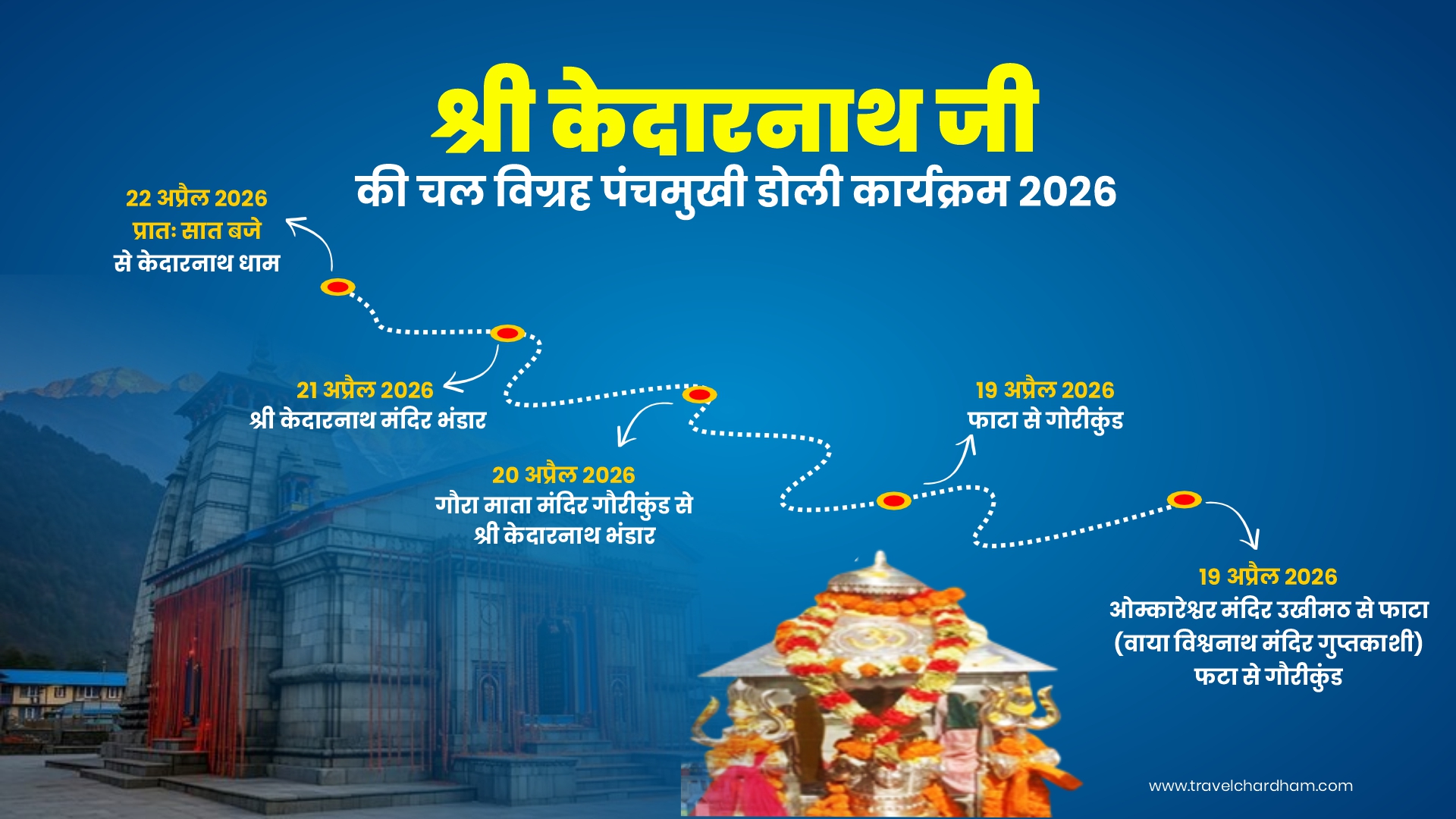 | Kedarnath Mandir Bhandar to Kedarnath Shrine | 22 April 2026 |