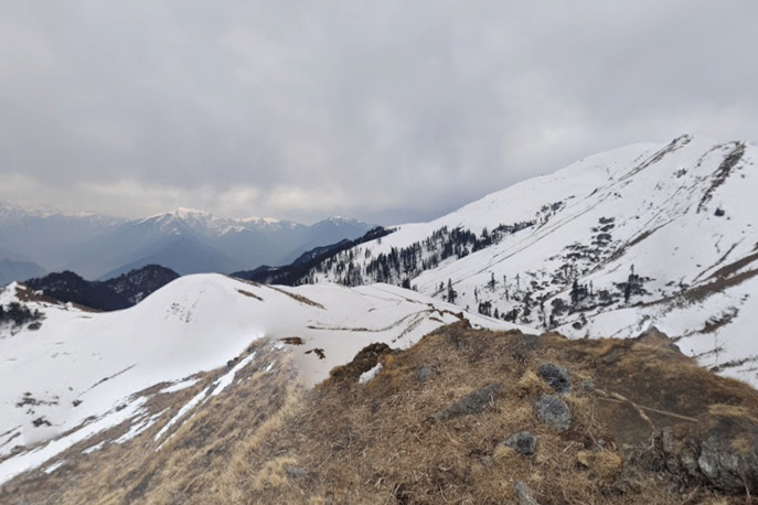 After walking around 1 km, the village and paddy areas give way to the dense forest, which is filled with oak and rhododendron trees. After covering around 4 km, you will arrive at the renowned hiking point called Barnala. From this point, the peaks of the Himalayas come into view, which were hidden earlier.